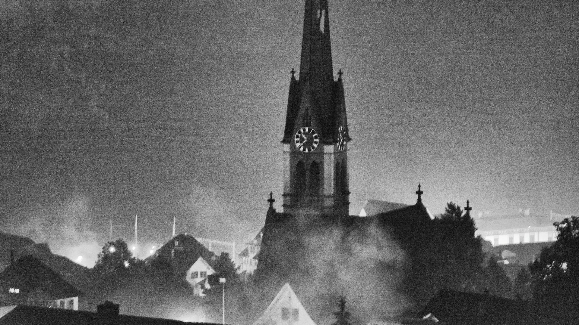 Nein, hier wird nicht die Stadt abgefackelt, es ist bloss der Rauch nach dem Gros des 1. August Feuerwerks… (no we’re not burning down the village, it’s the smoke after