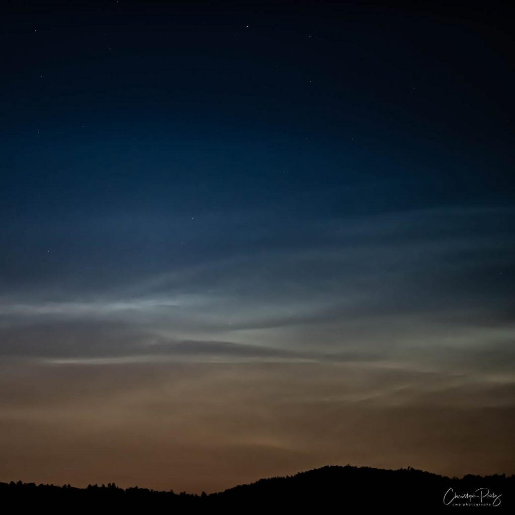 While taking pictures of the comet Neowise I also saw these night clouds over Rapperswil.